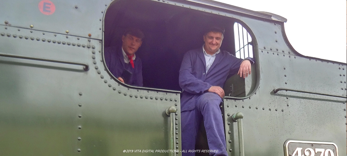 This was film and photograph old trains day: to wit, the two steam locomotives and diesel train which make up the Gloucestershire Warwickshire Railway. This line traces its history back to the height of the Victorian era when the legendary Great Western Railway held sway over what was then mass transportation. Among the Great Western's achievements was the Honeybourne Line, the original line running 28.75 miles from Stratford-upon-Avon to Cheltenham. Wayne and I rode the complete currently-existing line (about 12.5 miles one way) from Toddington (once over the Stanway Viaduct on the diesel train) to Winchcombe to Gotherington past Bishop's Cleeve to Cheltenham – and back - all the while filming background plates! TRAVEL TIP: purchase the all-day Rover ticket and you can then ride as much as you like on all three of these wonderful trains – good fun!
